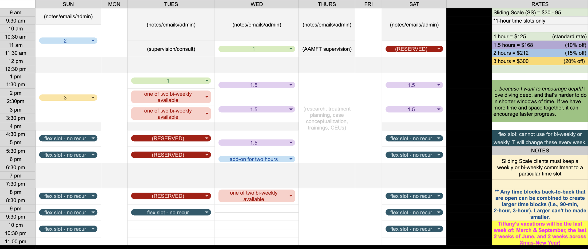 I will try to update this schedule here as more slots are reserved! If you’re a current client and would like to reserve a future slot, please email me. (SCS email OK until Dec 12!)